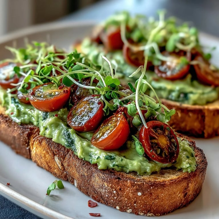 The beauty of this toast is that it's flexible without becoming unrecognizable. Walnuts work just as well as pine nuts if that's what you have, and I've honestly preferred them some days because they're less delicate and add earthier notes. Arugula or sunflower microgreens bring different peppery qualities, and even a ripe heirloom tomato (sliced thin instead of halved) creates something equally delicious. The pesto itself is forgiving too—more or less garlic depending on your mood, a squeeze more lemon if your avocado tastes buttery rather than bright.