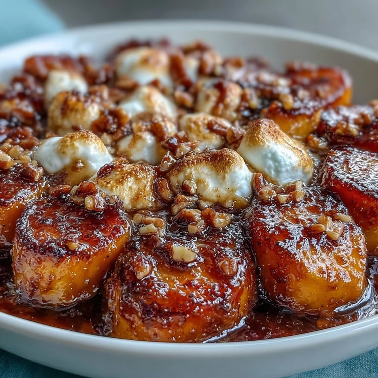 Save My aunt pulled this dish from the oven every Thanksgiving, and the kitchen would fill with this warm, buttery-sweet smell that made everyone stop talking. One year I asked if I could help, and she handed me a peeler with this knowing smile, like she'd been waiting for that question. The marshmallows on top would be golden and puffy, the pecans toasted to perfection, and suddenly I understood why this wasn't just a side dish—it was the moment the meal became real. That first taste, the contrast of soft yams and crunchy crumble, changed how I thought about holiday cooking. Now when I make it, I'm not just following steps; I'm recreating that feeling.
