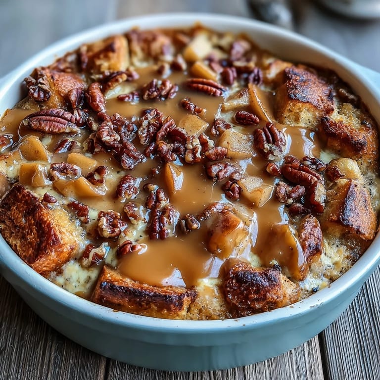 Save The smell hit me before I even opened the oven door: brown sugar, warm apples, and that unmistakable buttery scent of brioche soaking up cream. I had tossed together this bread pudding on a whim one rainy Sunday, using leftover challah and a jar of caramel I had been hoarding. When I pulled it out, golden and bubbling at the edges, I knew I had stumbled onto something that would become a regular in my fall rotation. It is comfort in a baking dish, the kind of dessert that makes people linger at the table.