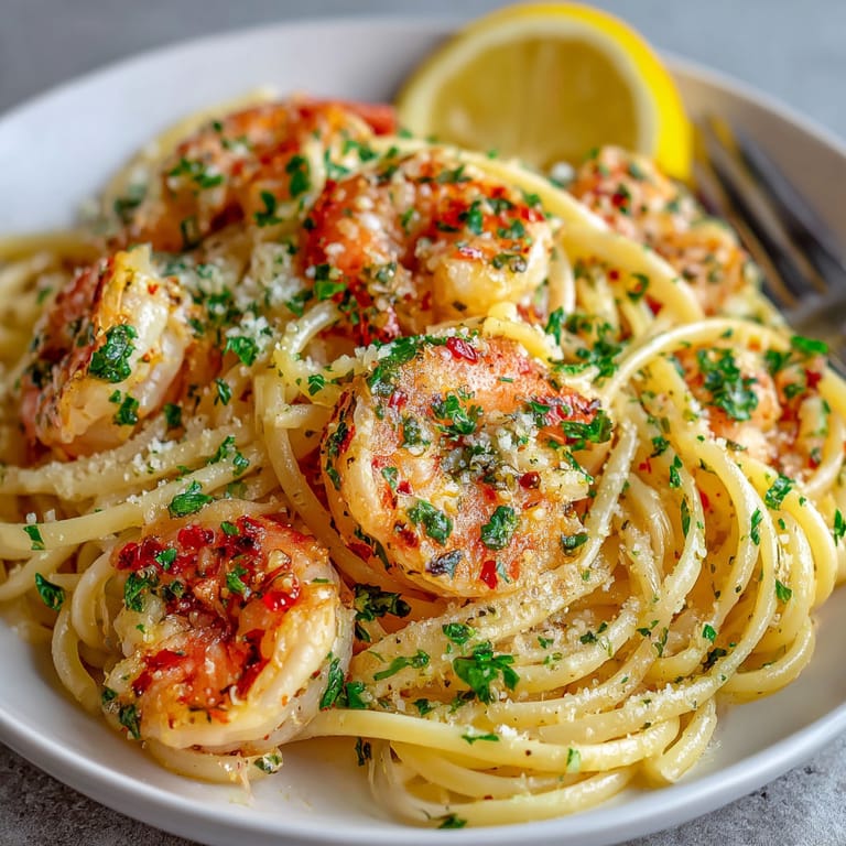 Swap parsley for basil in summer for a fresh herbal note Try whole wheat or veggie pasta for a wintery boost Add halved cherry tomatoes in late summer for extra sweetness I sometimes toss in baby spinach at the end to wilt it slightly or sprinkle on toasted pine nuts for crunch. The versatility means this scampi can adapt to whatever leftovers you have.