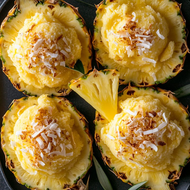 Save Biting into a frozen pineapple sorbet bowl brings a burst of tropical flavor right to your table—no plane ticket required. These sun-kissed bowls start with scooped-out pineapple halves, which are filled with bright, creamy pineapple-lime sorbet for a cooling treat that looks as good as it tastes. This recipe is just the ticket when you want to impress friends with something easy but showstopping, or to beat the summer heat in the most delicious way.