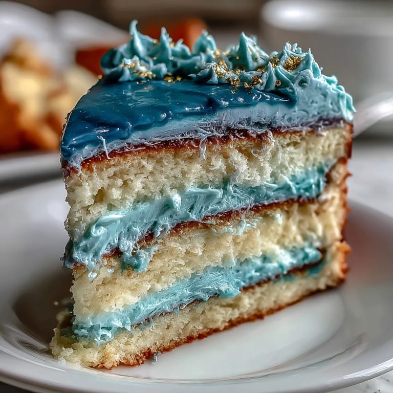 I made this cake for Jamie's graduation—the kitchen turned into a fun chaos with blue splatters and gold dust everywhere. The moment we sliced it, everyone paused, caught off guard by the stunning blue gradient. That little hush before applause made me realize how much joy a homemade cake brings to a celebration. Watching friends snap photos and savor the first bite felt like sharing more than just dessert—it cemented the evening in golden memories.