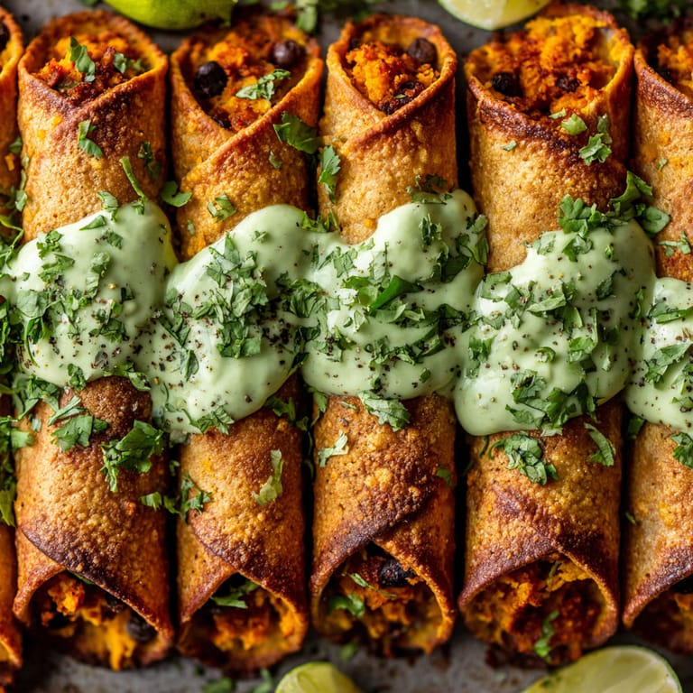 Save These crispy sweet potato and black bean taquitos have become my go-to when I want something quick wholesome and seriously satisfying. By baking instead of frying you get that craveable crunch with a fraction of the fuss making them perfect for busy weeknights or anytime you are hosting friends. The avocado crema brings a cool zesty finish that makes each bite pop.
