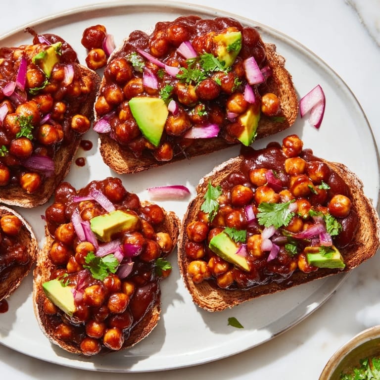 Serve BBQ chickpeas on toast right away for maximum crunch. Customize with fresh toppings to suit your taste.