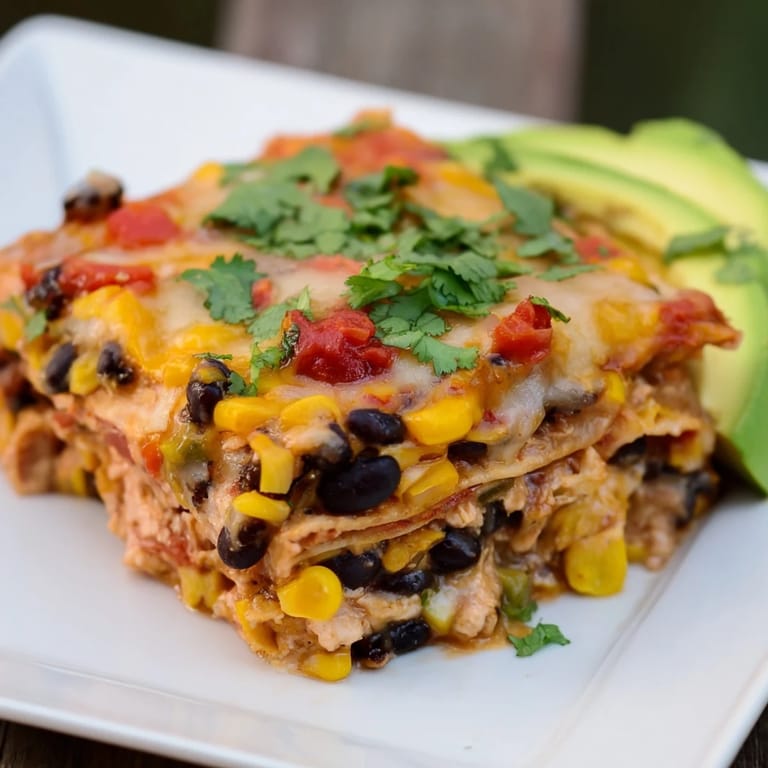 Save A fast, hearty, and flavorful vegetarian casserole layered with black beans, corn, tortillas, salsa, and cheese—perfect for busy weeknights.