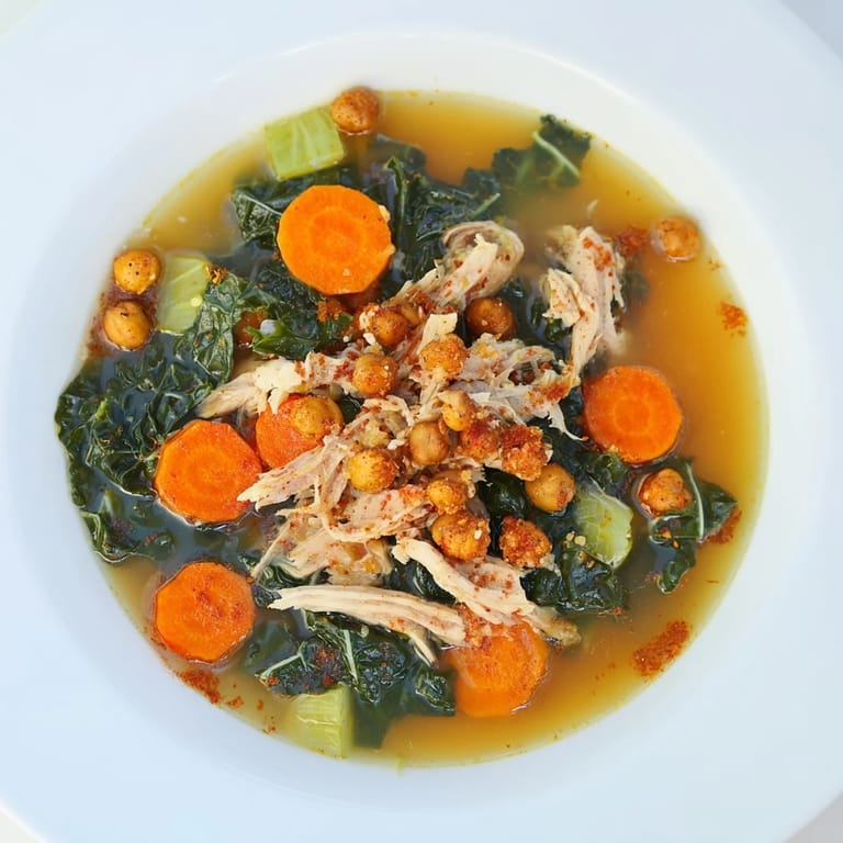 Save A nourishing, hearty soup featuring tender chicken, vibrant kale, and crunchy spiced chickpeas — the perfect healthy comfort food twist.