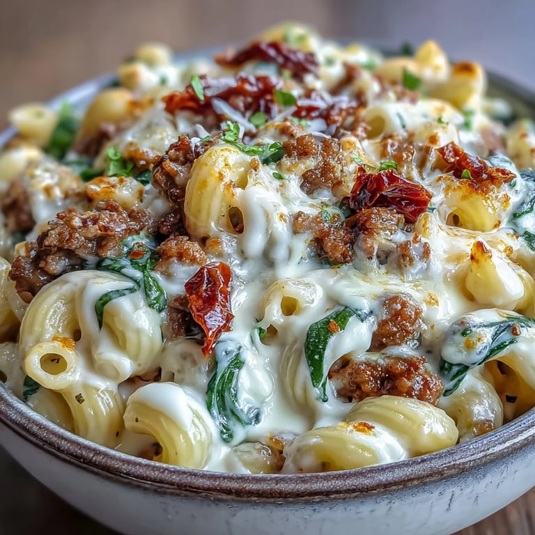 Save My neighbor Maria showed up one evening with a pot of something she called "emergency dinner," and I watched her toss pasta, meat, cream, and what looked like half her pantry into one pan. The smell alone made me forget I'd planned to order takeout. She shrugged and said it was just chili mac with an Italian twist, but when I tasted it, I understood why her kids never complained about weeknight dinners. That smoky, creamy, slightly tangy bite has lived in my head ever since.