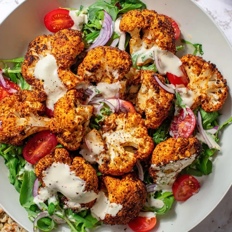 Save I discovered this salad by accident one afternoon when I had a head of cauliflower going soft and an air fryer that had just changed my cooking life. The first time I roasted those florets with smoked paprika and cumin, the kitchen filled with this warm, almost toasted aroma that made me stop mid-chop. I threw together whatever greens were in the crisper, whisked up a tahini sauce on instinct, and suddenly had something that felt both indulgent and impossibly light. It's become the salad I make when I want to feel like I'm taking care of myself without any of the guilt.