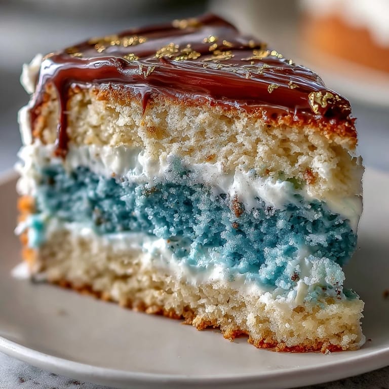 I made this cake for Jamie's graduation—the kitchen turned into a fun chaos with blue splatters and gold dust everywhere. The moment we sliced it, everyone paused, caught off guard by the stunning blue gradient. That little hush before applause made me realize how much joy a homemade cake brings to a celebration. Watching friends snap photos and savor the first bite felt like sharing more than just dessert—it cemented the evening in golden memories.