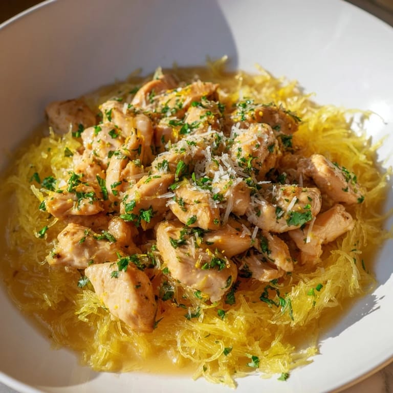 Save The first time I made spaghetti squash, I kept poking at it with my fork, half-convinced something magical was happening in my oven. Those strands appearing like pasta felt like a kitchen secret I had somehow missed until my late twenties. Now this lemon garlic chicken version is the dinner I make when I want something that feels indulgent but actually loves me back.