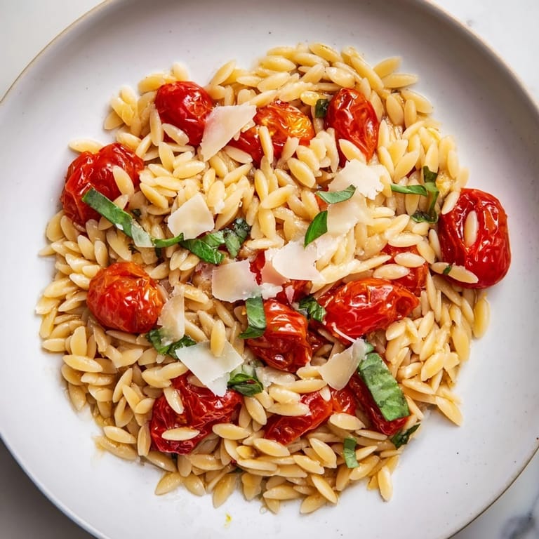 Save There's something about the smell of garlic hitting warm olive oil that instantly transports me to a sunny kitchen, and this orzo came about on one of those afternoons when I had tomatoes from the farmers market practically begging to be used. I wasn't aiming for anything fancy—just something that could come together in less time than it takes to watch a TV episode, something that would taste like summer even in the middle of winter. The first time I tossed it all together, the pasta water made this silky sauce that caught me off guard; I'd expected to need cream but didn't need it at all.
