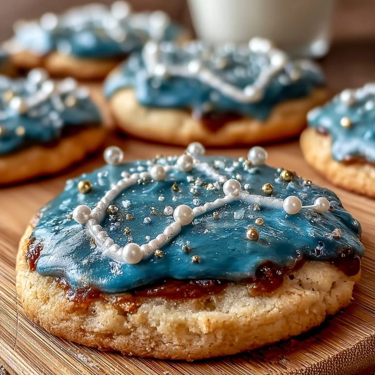 While these cookies celebrate Pisces, you can easily adapt the design to feature any of the twelve zodiac constellations—simply research the star pattern and adjust your piping accordingly. For a shortcut version, use store-bought royal icing and focus your energy on the decorative details. Swap edible pearls for white nonpareils, gold dragées, or even edible glitter for different celestial effects. Create an ombre night sky by blending navy blue into lighter blue or purple icing. For dietary modifications, the cookies can be made gluten-free using a 1:1 baking flour substitute, though texture may vary slightly. Add a touch of almond extract alongside the vanilla for a more complex flavor profile.