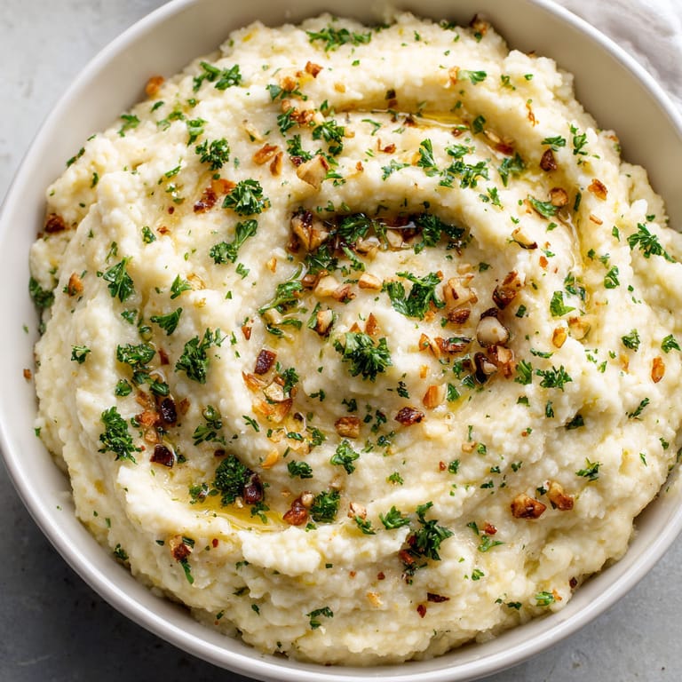 Save Creamy roasted garlic and herb mashed cauliflower brings big comfort but with a lighter touch. This is my favorite trick for getting that classic mashed potato texture using nutritious cauliflower instead. When you roast the garlic first it turns mellow and caramel-like then blends right into the cauliflower for an unforgettable flavor. Fresh parsley stirs in brightness. Whether you are making weeknight dinners healthier or looking for an impressive holiday side this recipe does it all.