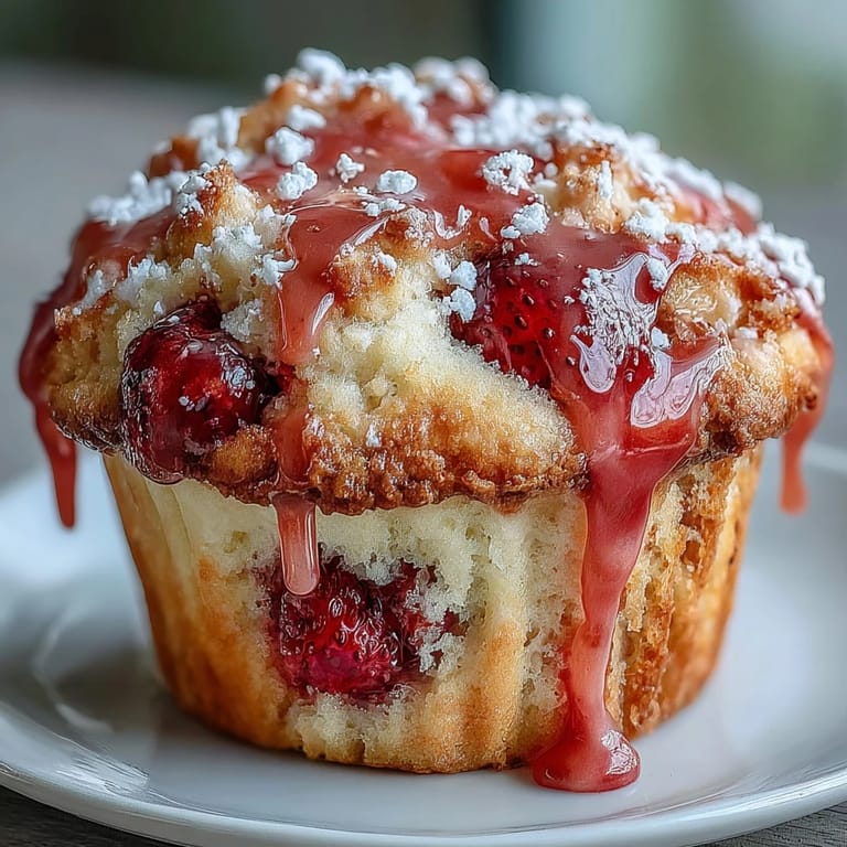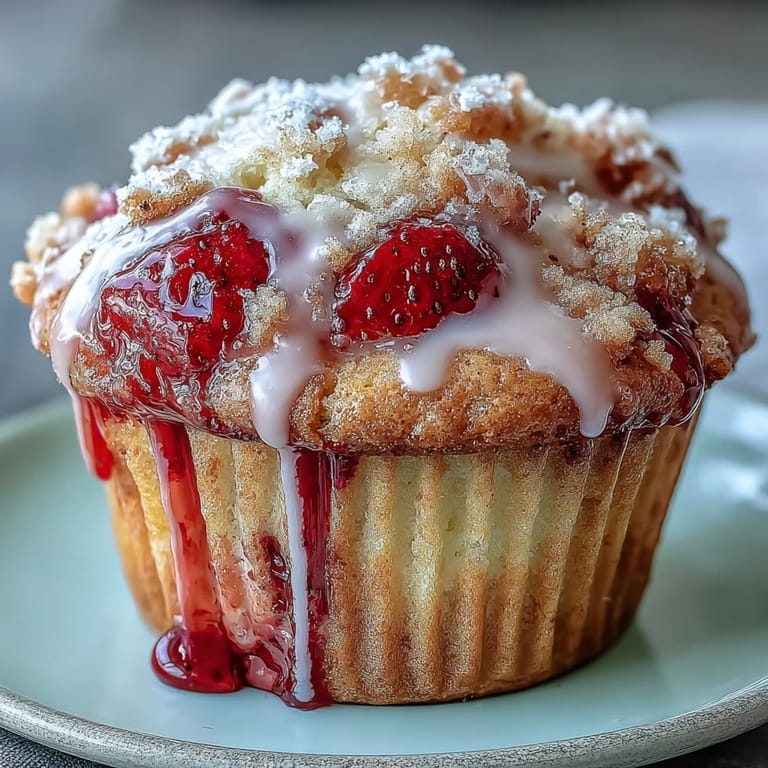 Save My neighbor knocked on the door one Saturday morning with a basket of strawberries from her garden, the kind that smell like summer itself. I had no grand plan, just a kitchen counter and an impulse to bake something that would make the house smell as good as those berries looked. These muffins came together almost by accident, but they've become the recipe I reach for whenever I want something that feels both special and completely unfussy.