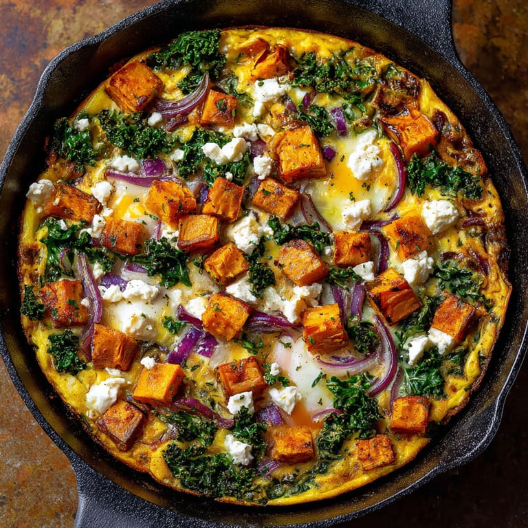 Save Brightly colored and deeply satisfying this sweet potato and kale frittata quickly became my weekend go to for brunches and even hectic weeknight dinners The combination of savory eggs sweet earthy potatoes and vibrant greens always feels nourishing and comforting Plus it is an easy way to clear out the crisper